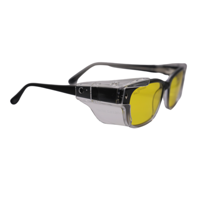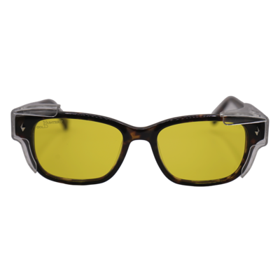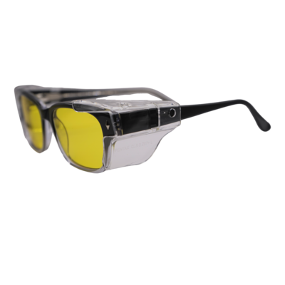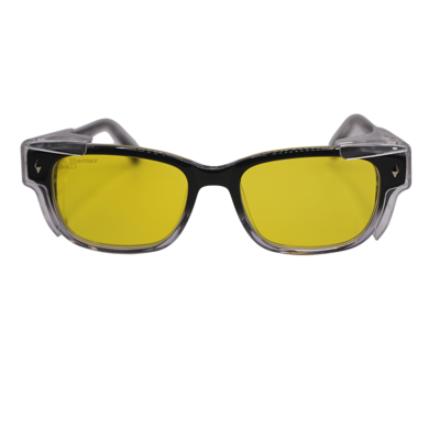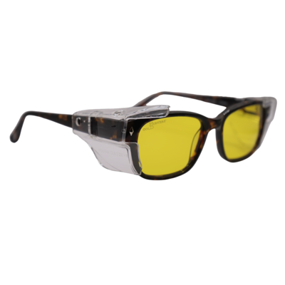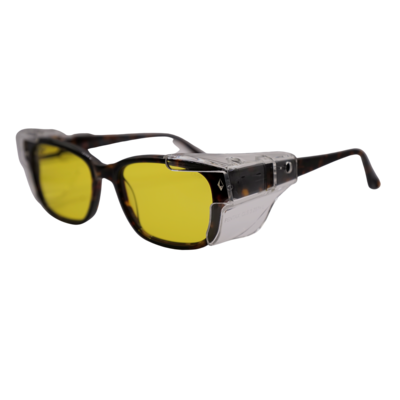 The Modern Dago is a stylish plastic frame which come with clear, polycarbonate side shields. Meets ANSI Z87.1 standards for high mass & high velocity impact resistance. Side shields must be worn to meet ANSI Z87.1 lateral coverage protection standards.